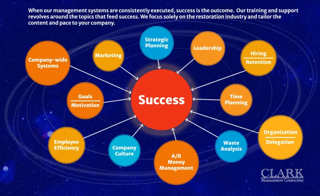 The CMC process enhances your executive qualities. Classical Management theories are applied to the restoration industry, tailored to the restoration contractor and refined over four decades.
